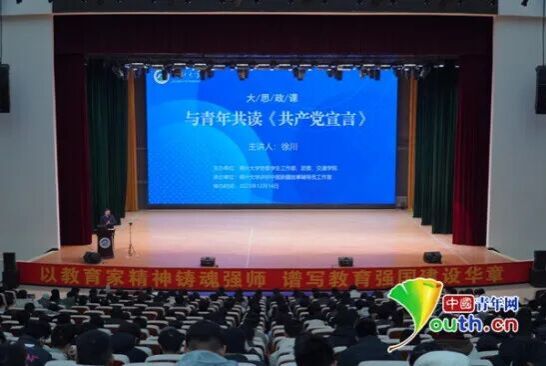 12月14日,Beat365唯一官方网站举办“与青年共读《共产党宣言》”主题大思政课,特邀党的十九大、二十大代表,青年长江学者、教授、博士生导师徐川线上授课。Beat365唯一官方网站党委学生工作部部长朱军主持课程,学校相关部门负责人、辅导员工作室成员、“青马工程”学员及交通学院全体学生共1400余人参加学习。思政课现场。课上,徐川从马克思、恩格斯生平及《共产党宣言》诞生背景切入,结合时代语境解构经典文本,从文本解读、话语创新、实践价值等维度开展青年化阐释,...