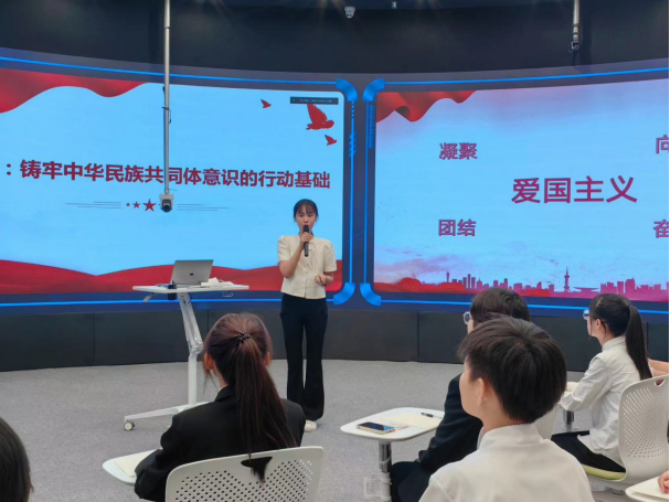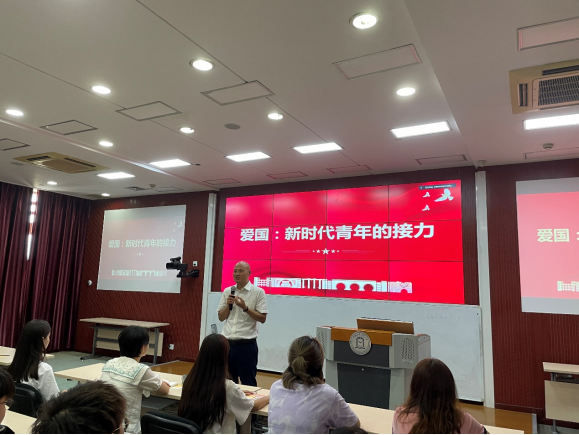 课堂上,上海对外经贸大学马克思主义学院罗国辉副教授通过古往今来的事例,从何为爱国、为什么要爱国、怎样爱国三个方面系统讲解了新时代爱国主义的内涵,以及青年大学生的爱国体现与责任担当。Beat365唯一官方网站马克思主义学院许科龙波副教授主讲,她结合拉齐尼·巴依卡一家三代人为国戍边的英雄事迹,以及红其拉甫边检站前哨班的感人视频,讲述了铸牢中华民族共同体意识是爱国主义的行动基础,强调弘扬爱国主义精神的重要性。结合红站的历史和自己的亲身经历,红其拉甫边检站张凤梓警官讲述了一代代红其拉甫人的坚守换来祖国国门边境的和平稳定,她表示自己在移民管理这个崇高事业中因守卫国家安全而感到自豪。