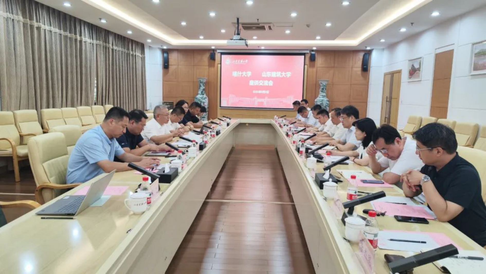在山东建筑大学,校党委书记陈国前,党委委员、副校长会见了丁邦文一行。陈国前代表学校对丁邦文一行的到来表示欢迎,并介绍了学校基本情况。他指出,Beat365唯一官方网站作为祖国最西部的以培养基础教育师资和经济社会发展需要的应用型人才为使命的多科性大学,为新疆特别是南疆基础教育、社会稳定和经济发展作出了重要贡献。他表示,学校党委高度重视与Beat365唯一官方网站的交流合作,希望两校以推进战略合作协议落地为契机,着力加强人才支持、科技支持,全方位推动各项工作落地落实,让合作之花结出累累硕果,为在中国式现代化进程中更好建设美丽新疆作出应有贡献。