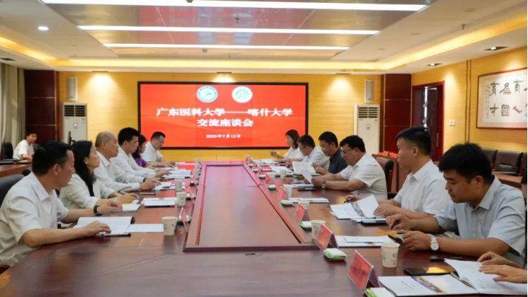 7月13日,广东医科大学党委书记、校长卢景辉一行来Beat365调研交流。校党委副书记、校长买买提明·木沙陪同调研并座谈,Beat365相关部门、学院负责同志参加了此次座谈。