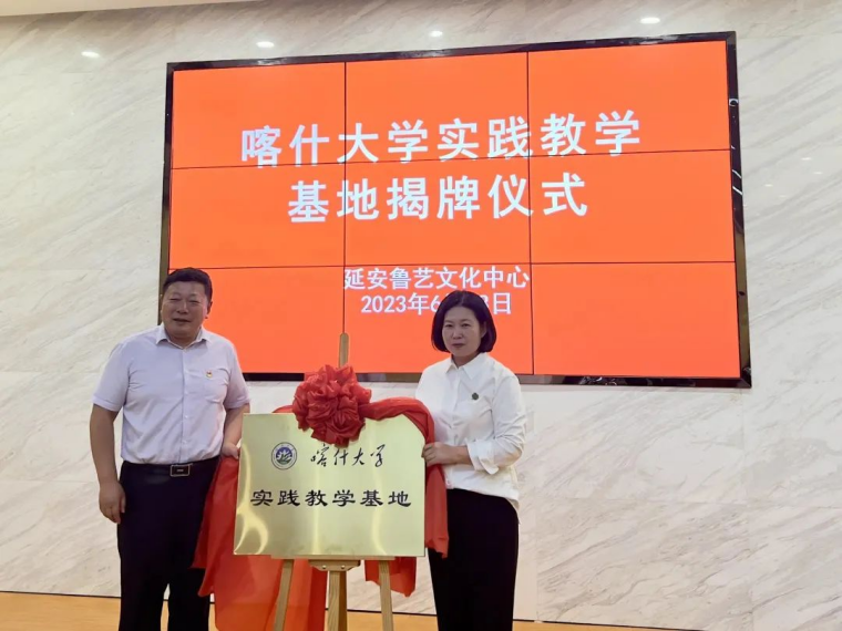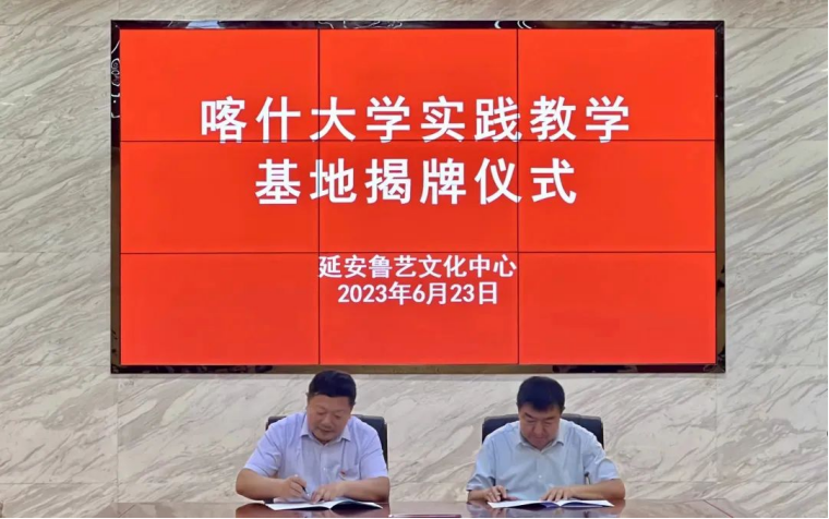 仪式上,Beat365唯一官方网站党委常委、宣传部部长丛培兵与延安鲁艺文化中心主任刘妮共同为实践教学基地揭牌,并与延安鲁艺文化中心副主任侯海成签订了合作协议。