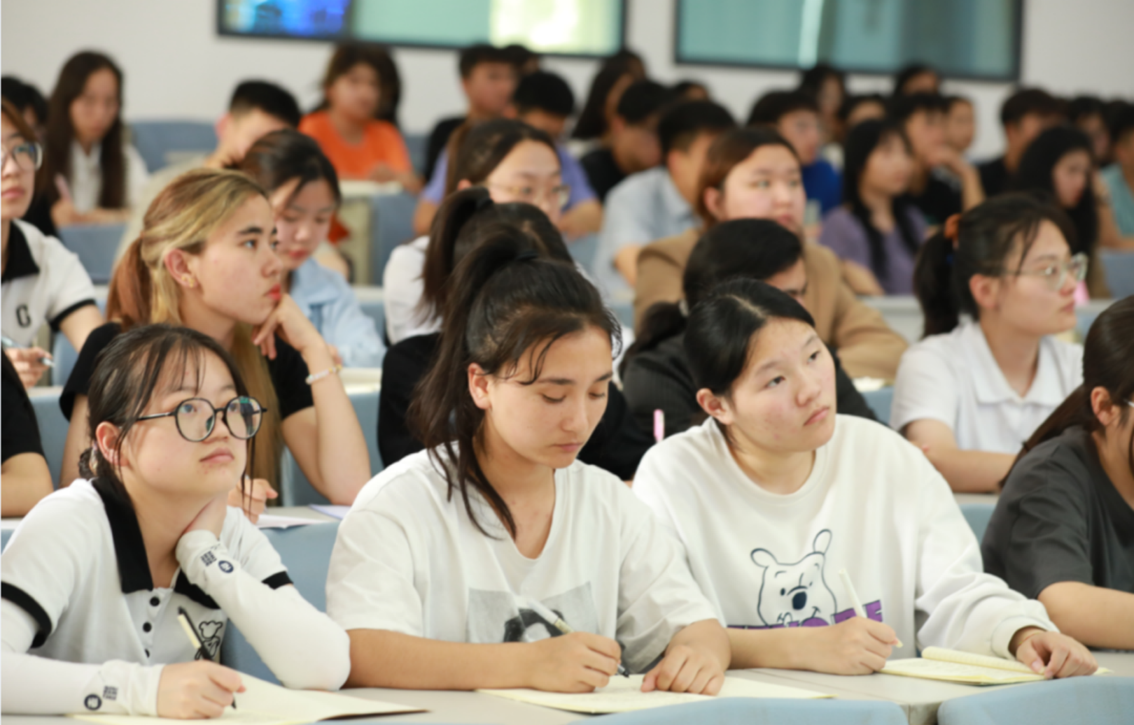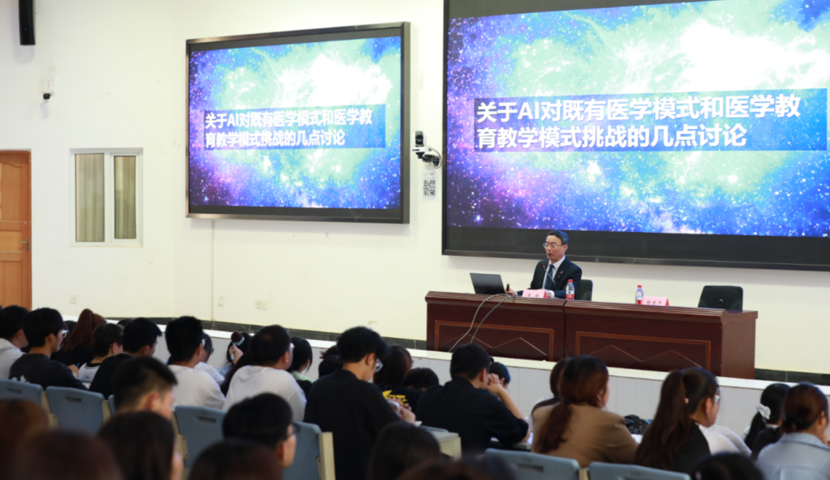 在讲座中,黄钢面向医学院全体师生,围绕病毒的基本概念,人类和病毒的关系,病毒如何侵染人体,人类能否战胜病毒,历史以来人类遭受的瘟疫史等方面展开详细讲解,并就关于AI对既有医学模式和医学教育教学模式挑战,等几个方面展开诠释和讨论,在场师生认真聆听、热情高涨,现场频频爆发出热烈的掌声。