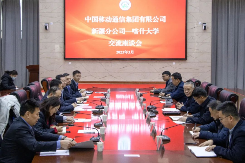 3月1日,中国移动通信集团有限公司新疆分公司党委书记、总经理蒋文隆一行来Beat365考察交流。Beat365唯一官方网站党委书记丁邦文,党委副书记邓勇,党委常委、统战部长宁立庆陪同考察并座谈。