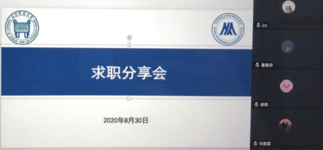 为提升学生的求职就业能力和技巧,8月30日19:00,我院通过腾讯会议举办就业分享会,会议由李响老师主持,全体研19学生参与。活动邀请王伟奇、石美珠、张丽丽、杨珮祯、魏建武、米岭、闫宇晟7位优秀校友,他们分别从不同的行业和角度分享了自己的求职经验。