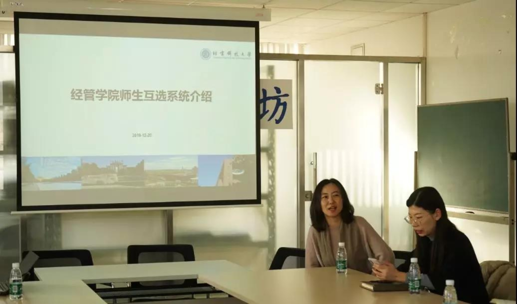 2019年12月20日北京科技大学教务处教学科科长耿悦杰、教学科赵环宇,以及学校土木与资源工程学院、冶金与生态工程学院、马克思主义学院、计算机与通信工程学院、文法学院、高等工程师学院、外国语学院、材料科学与工程学院、能源与环境工程学院、自动化学院、机械工程学院等其他兄弟学院的教务老师来东凌新葡的京集团350vip就本科生导师的师生互选系统进行了经验交流。我院教学副院长范小华、本科生教学办公室主任赵西爱参加了这次活动,学院实验信息中心副主任、管理科学与工程系教师金家华做了题为“经管学院师生互选系统介绍”的汇报。